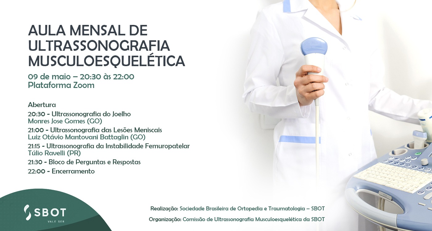 O evento é gratuito e aberto a todos ortopedistas e residentes SBOT. Inscreva-se no link: https://bit.ly/AulaUltrassomMai