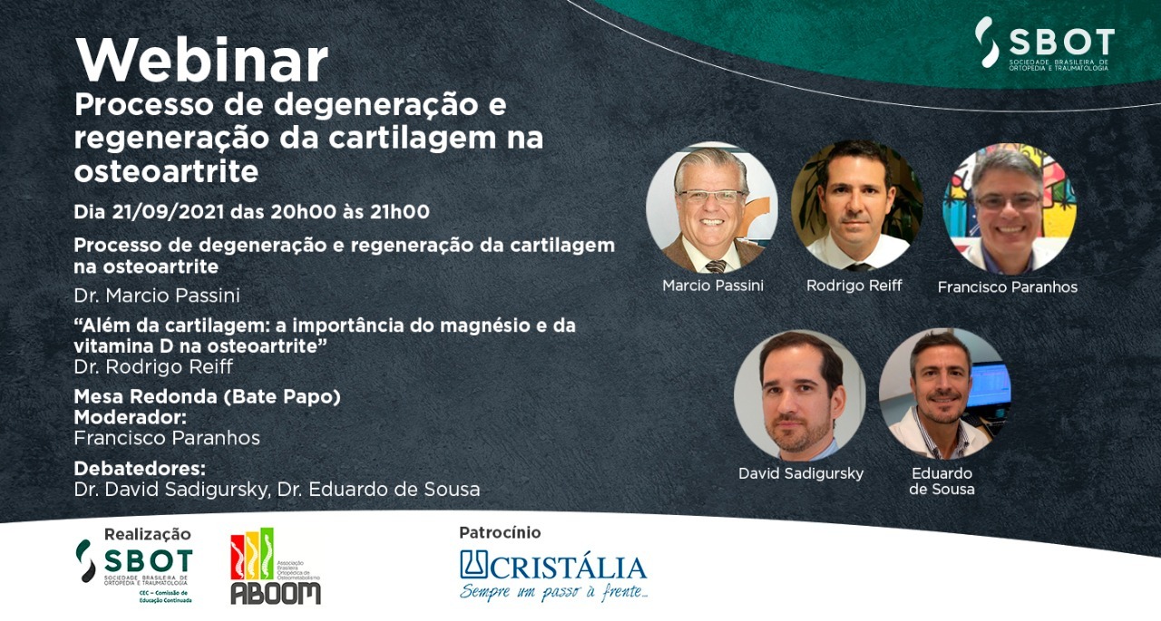A Comissão de Educação Continuada juntamente com o Comitê de Osteometabolismo Ortopédico da SBOT realizará evento online dia 21 de setembro de 2021, das 20h às 21h. Confira a programação:
