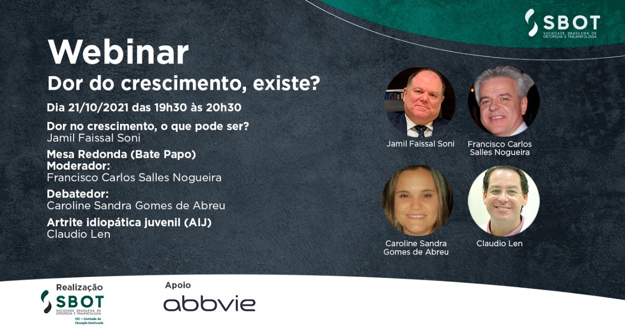 A Comissão de Educação Continuada da SBOT realizará evento online dia 21 de outubro de 2021, das 19h30 às 20h30. Confira a programação: