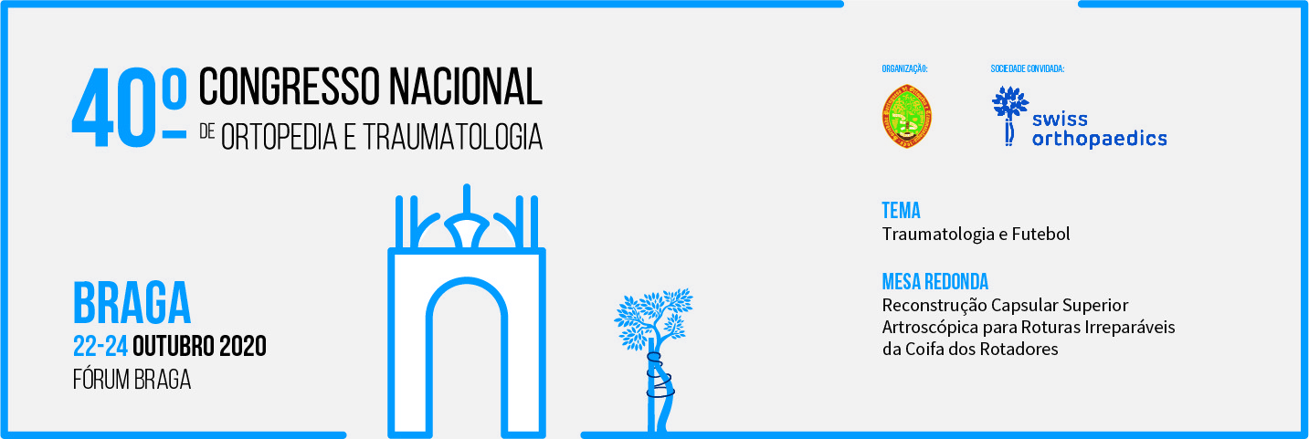 De 22 a 24 de outubro será realizado o 40º Congresso Nacional de Ortopedia e Traumatologia da S.P.O.T – Sociedade Portuguesa de Ortopedia e Traumatologia, em Braga – Portugal. O período para inscrições de resumos científicos é de 01 de março a 29 de maio de 2020 e pode ser feita através do link: https://emma.events/spot2020.