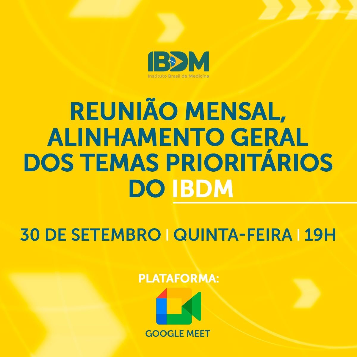 O Instituto Brasil de Medicina – IBDM realizará nesta quinta-feira, dia 30 de setembro, uma reunião sobre o balanço de atividades realizadas no Congresso Nacional e definição de pautas prioritárias para a medicina de qualidade.