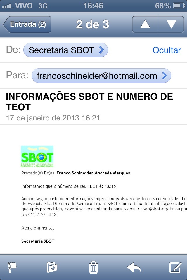 2013 - TÍTULO DE ESPECIALISTA EM ORTOPEDIA E TRAUMATOLOGIA