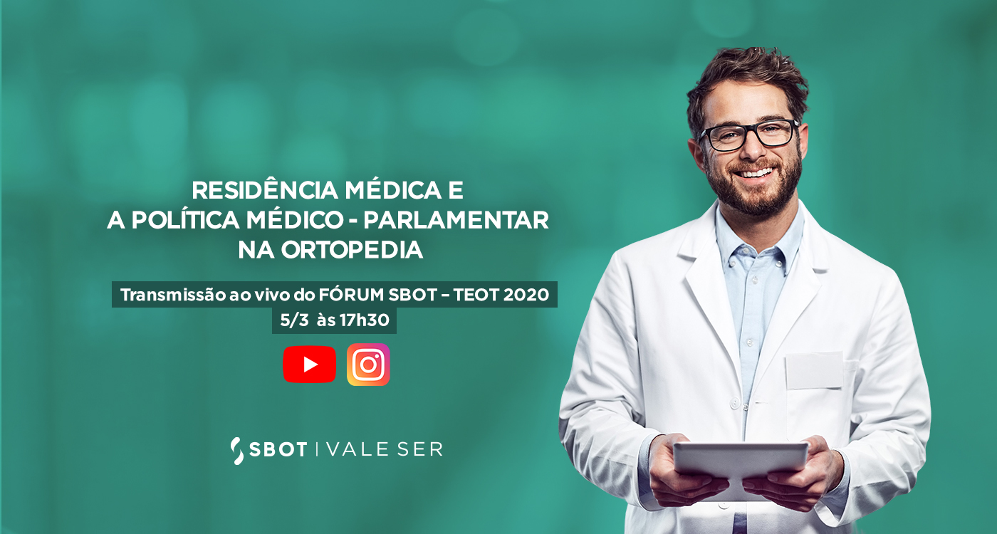No dia 05 de março, a partir das 17h30 será transmitido ao vivo o Fórum SBOT com o tema: Residência Médica e a política médico parlamentar na Ortopedia. O encontro, que trará importantes convidados do Ministério da Educação (MEC), Conselho Nacional de Residência Médica (CNRM), deputados e representantes da Frente Parlamentar de Medicina, irá abordar assuntos pertinentes à carreira médica e, principalmente, de ortopedista.