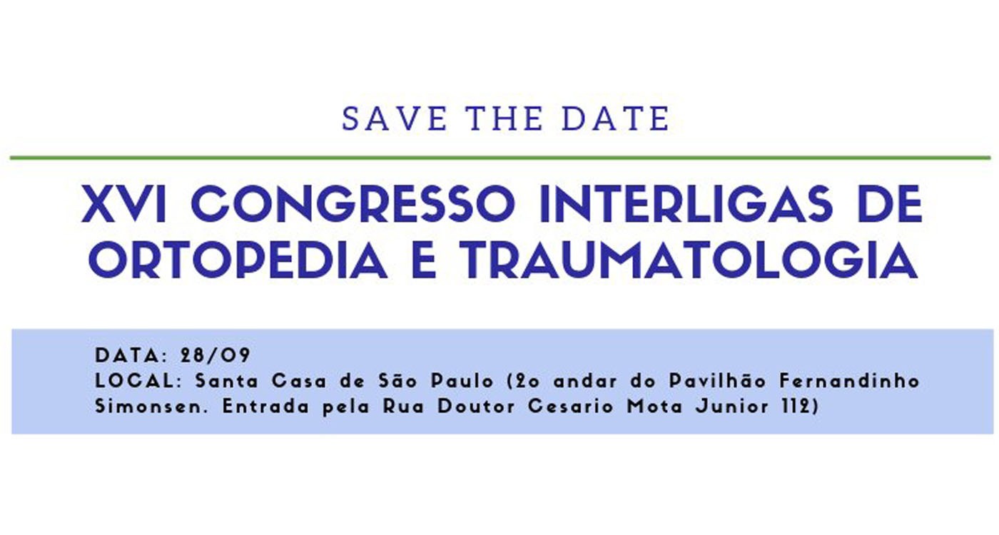 No dia 28 de setembro, das 07h30 às 15h, será realizado o XVI Congresso Interligas de Ortopedia e Traumatologia na Santa Casa de São Paulo, no Pavilhão Fernandinho Simonsen.